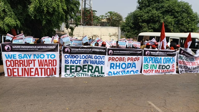 “The Warri Indigenous Women Forum, formally protest the re-delineation exercise allegedly carried out by the Independent National Electoral Commission (INEC) under the immediate past Chairman, Professor Mahmood Yakubu, as it gravely violates our fundamental and political rights as members of the Itsekiri Nation, whose ancestral homeland lies within the Warri Federal Constituency of Delta State.