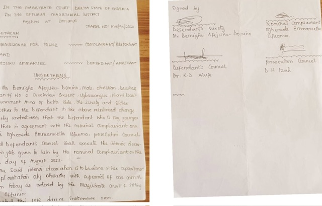 He was then arrested. And was allowed to go the next day. And when the mattar got to court. Emmanuella won the case no one was assaulted and the boy was ordered to come finish up the job and pay back the remaining money with him for the job.
